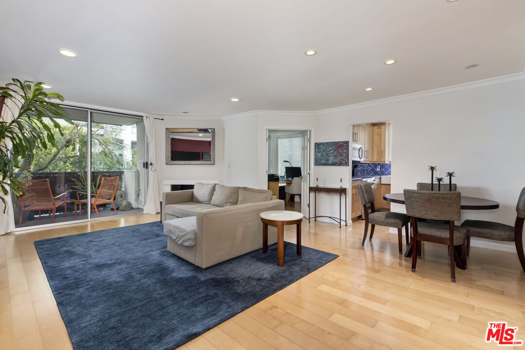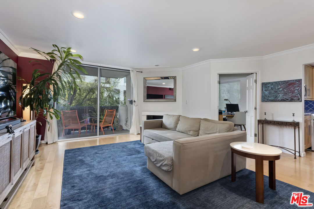 EXTREMELY MOTIVATED SELLER BRING YOUR BUYERS AND OFFERS ! Beautiful unit in highly sought after Holloway Terrace. The guest room/office was a den conversion with two closets and lots of windows. Features include formal entry with powder room, balcony with tree top views, hardwood floors recessed lighting, crown moldings & triple planed windows in primary bedroom. The kitchen has blue tiles, apron front sink, wood cabinets, soft close drawers & stainless steel appliances. Other features include dining area w/wine frig, beverage storage & glassware cabinets, limited common walls, bath off primary bedroom w/vanity/sink/cabinets, tiled baths, central air/heat gas fireplace, views from all rooms, side by side parking, newly redone pool/ spa, nice gym, amazing roof deck, plus entertainment room. Nestled in a trendy neighborhood known for its lively atmosphere, you'll find an array of restaurants, shops, &ent entertainment options just minutes away making this condo an ideal choice for anyone looking to immerse themselves in the dynamic culture of West Hollywood. Motivated seller!